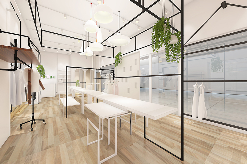 照射吊頂方面,考慮到女裝店面占地面積只有20平米,空間過(guò)于狹小,可以優(yōu)先考慮無(wú)主燈設(shè)計(jì)思路,盡可能的騰出更多空間高度。其實(shí)高度和寬度沒(méi)有必然聯(lián)系,但高度與橫縱距離達(dá)到一定舒適度后,可以令人產(chǎn)生舒適感,能增加并提高顧客進(jìn)店挑選體驗(yàn)度。